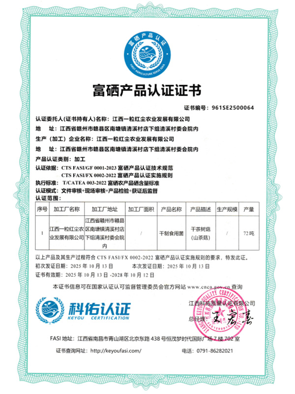 江西一粒紅塵農業發展有限公司是一家總部位于江西省贛縣的現代農業多元型企業,專注于食用菌的研發、種植、深加工貿易、研教培、農文旅等全產業鏈發展。公司秉承“健康綠色共享、共贏”的核心價值觀,致力于引領鄉村振興之路,旨在成為......